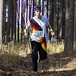 ![]() A German competitor on a 2-meter band ARDF course. | |