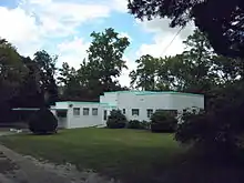 Azurest South is considered a rare example of the International Style in Virginia and displays her interest in avant-garde design.[16] Meredith also used Azurest South as her own art studio.[15] She was active in documenting her lifestyle and accomplishments at Azurest through photographs.[17] The archived documentation and remains of Azurest have inspired intersectional research on race, queerness, and spatial design during the Jim Crow Era.[18] Also,she used her aesthetic and artistic talent to coordinate color schemes and draw blueprints for several campus buildings. For example, she worked with the Alumni House Committee from 1949 on in proposing the creation of an Alumni House. After her proposals were turned down, she decided to give half of Azurest South to the Alumni Association after her death, hoping it would be used as an Alumni House, as it actually is today.[4][10] Meredith also worked as an advisor of interior decoration on the local better homes Committee.[2] In 1947, Meredith started developing a 120 lot subdivision in Sag Harbor called Azurest North together with her older sister Maude.[8] Azurest North was created as a vacation destination for middle class African Americans.[15] In order to develop Azurest North, the two sisters and other developers formed a group, called Azurest Syndicate, which worked to create an African American leisure community.[17] Lots were sold to investors who built cottages in Sag Harbor.[4][10] Meredith designed at least two of these cottages. Terry Cottage, which belonged to her sister Maude Terry and was built in 1949 was designed with similar formal aspects to Azurest South. Edendot, which belonged to her friends Ed and Dot Spaulding was a Prairie Style building.[8][6] Following her retirement, she took a post as the official secretary of the Azurest Syndicate Inc.[7] Azurest South became the home of the Virginia State University National Alumni Association in 1986, and the building was added to the National Register of Historic Places in 1993. Meredith's historical highway marker has been approved by the Department of Historic Resources in 2008.