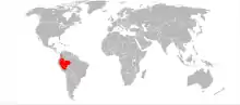 The squirrels are found in the upper Amazon Basin, broadly west of the Purus and Rio Negro rivers, in Brazil, Bolivia, Peru, Ecuador, and Colombia. They typically inhabit evergreen tropical rainforests at up to 2,000 m (6,600 ft) elevation,[3] although they may sometimes be found in more disturbed habitats.[4]