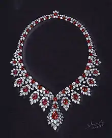 A Shinde painting of a necklace illustrates his mastery of the art of jewelry designing.