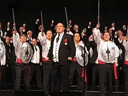 The chorus was formed in 1963[20] as the Daniel Boone Chorus with 26 members,[21][11][22] and became a member of SPEBSQSA (the Society for the Preservation and Encouragement of Barbershop Quartet Singing in America)[23] the following year. The chorus changed its name to the Ambassadors of Harmony in 1990 following its first international competition.[24] The chorus was directed by noted arranger[25] and mathematician David Wright[26][12] (now assistant director) from 1981 to 1990[21][27][28][29] and again in 1999 to 2000[30] and has been directed from 1991 to 1999[31] and since 2001[32] by Dr. Jim Henry (now co-director), bass singer of the 1993 International Quartet Champion, The Gas House Gang,[33][34][35] and the 2009 International Quartet Champion, Crossroads.[36] Since 2013, the group's co-director has been Jonny Moroni, baritone of Vocal Spectrum, the BHS 2006 International Quartet Champion and 2004 International College Quartet Champion.[37][38][39]