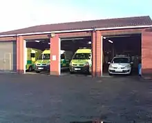 Ambulance stations have facilities for maintaining ambulance vehicles, such as a charger for the vehicles' batteries.[1] They have space for storing and maintaining medical equipment, and sometimes a fuel pump. There will also be facilities for the crews, including a kitchen and showers. It varies as to whether crews routinely wait at the station itself for call-outs (as full-time firefighters do). If they do, then the station will also have an alerting system and living quarters, including bedrooms. Larger stations may have a manager's office or training rooms.