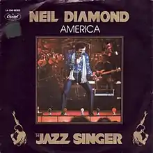 "America" is a song written and originally recorded by Neil Diamond, released in 1980 on the soundtrack album of Diamond's film The Jazz Singer. The song was a hit single in the United States in 1981, reaching number eight on the Billboard Hot 100, and was Diamond's sixth number one on the Adult Contemporary chart.[1] Billboard also rated it the #62 pop single overall for 1981.[2] Although the single version was a studio recording, overdubs of crowd cheering simulate the feel of a live performance.
