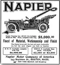 The American Napier was an automobile sold by the Napier Motor Car Company of America from 1904 until 1912.[1]