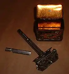 In 1903 Jerry Reichard leaves Gem Safety Razor Company to form yet another razor and blade producer, along with August Scheuber the company was briefly named 'Reichard & Scheuber Manufacturing Company'[6] before it became 'The Yankee Company'. The Yankee Company made wedge-blade razors under the name Yankee, Mohican & Winner. The Yankee Company, is renamed Ever-Ready in 1905. Gem & Ever-Ready merge in 1906 and is incorporated as the American Safety Razor Company. In 1906, abandoning the wedge-blade design, they introduced the standard single edge rib-back blade that is still used today.[5] In 1915 Ever-Ready Shaving Brushes were first introduced and continued to be produced until the early 1990s.