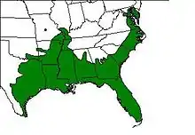 These frogs are found in the central and southeastern United States, with a geographic range from the Eastern Shore of Maryland to southeast Florida, with populations as far west as central Texas, and as far north as Delaware and southern New Jersey.[2] The frogs are considered monotypic, but clinal variation has been observed from Florida north along the Atlantic coastal plain. This may be attributed to the result of strong selection and/or drift.[2]