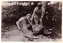 Pictures showing the "cooking and scraping" of Japanese heads may have formed part of the large set of Guadalcanal photographs sold to sailors which were circulating on the U.S. West-coast.[47] According to Paul Fussel, pictures showing this type of activity, i.e. boiling human heads, "were taken (and preserved for a lifetime) because the Marines were proud of their success".[14]