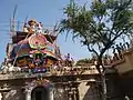 The present masonry structure was built during the Chola dynasty in the 9th century, while later expansions are attributed to Thanjavur Nayaks. The temple has a three-tiered rajagopuram (temple tower gateway) and has a moat both inside and outside its surrounding walls. There is a Saptamatrikas sculpted in a single panel and image of Tapsiviyaman. The Dakshinamurthy sculpture on the temple is unique as it is depicted with four hands - the upper right holding a bead made of Rudraksha, the upper left holding Agni (fire), the lower right holding cinmudra and lower left holding palm leaves. The temple tank associated with it is called Caturveda Tirtha, while the tree associated with the temple is Vanni. The presiding deity is Shiva in the form of Amirthakalasanathar or Amirthakadeswarar. The consort is Amirthavalli. Most of the shrines were constructed by the Medieval Cholas. There are shrines to Murugan and Ganesa. There is also a brick halls from the Thanjavur Nayak period.[2] The image of Lingothbhava is made of emerald, while the image of Ardhanarishvara is depicted with his right leg in relaxing posture. There are smaller shrines for Dhandapani Muruga in a small size and Nardana Vinayaka on the southern side. The front hall houses the Nandi Bali Peeta.[3]
