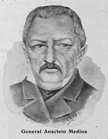 Anacleto Medina (1788 – July 17, 1871) was a Uruguayan military, politician and caudillo who participated in the Brazilian War, the Argentine Civil War and the Guerra Grande in the Banda Oriental.[1] He served in the Federal Army in the Unitary Army, and also in the Colorados and Blancos armies, during the Uruguayan Civil War.[2]