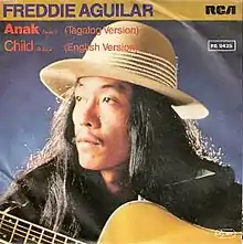 "Anak" (Filipino for child or more gender specific my son or my daughter) is a Tagalog song written by Filipino folk-singer Freddie Aguilar. It made the finals for the inaugural 1978 Metropop Song Festival held in Manila. It became an international hit, and was translated into 27 languages.[2] The lyrics speak of Filipino family values.[3] The current copyright owner of the song is Star Music, a recording company owned by the media conglomerate ABS-CBN Corporation.[4] It was produced by Celso Llarina of VST & Co. Tito Sotto was the executive producer for this song as well as its album of the same name.[5]