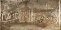 The inside of the eastern chamber contains a colorful mural illustrating the typical life of the Goguryeo people. The scene includes a kitchen, a meat storage room, a barn, a carriage shed, and household staff, along with other commonplace features.[4][5] This mural allows scholars to analyze the daily rituals of the Goguryeo culture, and gain insight on what the house of the tomb's owner may have looked like.