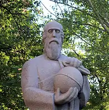 ![]() 1963 statue of Anania Shirakatsi holding a globe at the entrance of the Matenadaran | |
