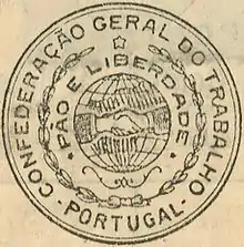 Under the influence of revolutionary unionism, workers' structures developed very rapidly from 1909.[1] The General Confederation of Labour was founded on 18 September 1919 in Coimbra,[5] on libertarian bases.[1] Manuel Joaquim de Sousa was elected general secretary.[6] The fundamental principles and objectives of the CGT, adopted at this congress are: the free autonomous federation of workers; direct action – outside any political or religious influence – with a view to eliminating the wage system; the collectivization of the means of production; the internationalism of workers' solidarity and the elimination of capitalism. The confederation created a newspaper A Batalha (The battle) which defended revolutionary unionist positions.[7]