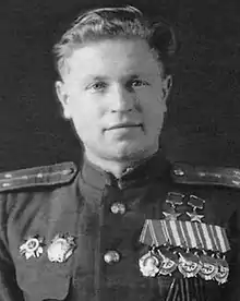Anatoly Yakovlevich Brandys (Russian: Анатолий Яковлевич Брандыс, Ukrainian: Анатолій Якович Брандис; 12 August 1923 – 23 March 1988) was a Ukrainian Ilyushin Il-2 ground attack pilot during World War II who was twice awarded the title Hero of the Soviet Union. After the war he remained in the Air Force and became a lieutenant-general.