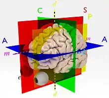 These three axes of the human brain match the three planes within which they lie, even though the terms for the planes have not been changed from the terms for the bodily planes. The most commonly used reference planes are: