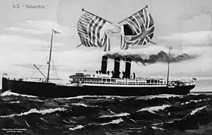 In the First World War Anchor Line lost ships to enemy action including the 10,968 GRT Cameronia, 8,662 GRT California, 14,348 GRT SS Tuscania (1914), and 14,348 GRT Transylvania the following month. In the 1920s they were replaced by the 16,297 GRT RMS Cameronia, 16,923 GRT RMS Transylvania, 16,792 GRT SS California (1923), and 16,991 GRT SS Tuscania (1921)