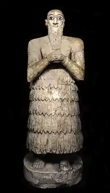 The Uruk period (c. 4000 to 3100 BC) existed from the protohistoric Chalcolithic to the Early Bronze Age period in the history of Mesopotamia, following the Ubaid period.[4] Named after the Sumerian city of Uruk, this period saw the emergence of urban life in Mesopotamia. It was followed by the Sumerian civilization.[5] The late Uruk period (34–32 centuries) saw the gradual emergence of the cuneiform script and corresponds to the Early Bronze Age.
