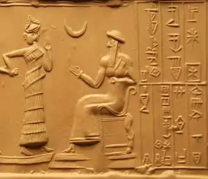 The Amorites were a nomadic Semitic people who occupied the country west of the Euphrates from the second half of the 3rd millennium BC. In the earliest Sumerian sources, beginning about 2400 BC, the land of the Amorites ("the Mar.tu land") is associated with the West, including Syria and Canaan, although their ultimate origin may have been Arabia.[8] They ultimately settled in Mesopotamia, ruling Isin, Larsa, and later Babylon.