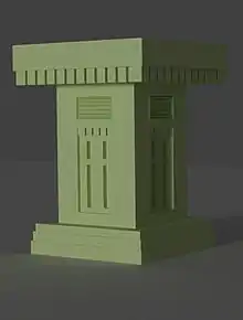 Compared to secular structures, temples are generally better known, so that it has been possible to develop a possible typology and history of development. In the following, the systems proposed by Jürgen Schmidt and (in more detail) M. Jung are described, which take into account both the floor plans and the actual appearance of the structure.[8] Comparatively few temples have been excavated to date, so these schemas remain provisional.