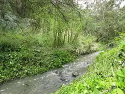 The creek begins in the hills north of Ringwood on the boundary of urban metropolitan Melbourne where it flows for roughly 2–3 km through Park Orchards and around 4 km through Warrandyte before emptying into the Yarra River. The creek is relatively uninhibited by weirs, dams or reservoirs and it floods often after heavy rain. It provides habitat for significant species, which includes amongst others; platypus, rakali, koalas, powerful owls, rufous night herons, white-winged choughs and yellow-tailed black cockatoos.