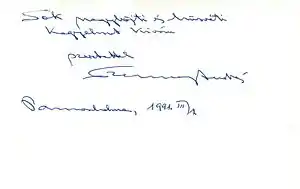 András Szennay Abbott of Pannonhalma sends His kind regards on 01/03/1991
