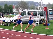 ![]() Pollmächer (left) and Jan Fitschen at German 10,000 m championship in Tübingen, 2006 | |
