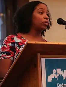 In the 2015 Boston City Council election, first-time candidate Campbell placed first in the 4th district's preliminary election and went on to defeat 16-term incumbent Charles Yancey in the general election with 61% of the vote.[4] Campbell was re-elected in November 2017, having run unopposed.[5] On December 9, 2017, Campbell announced that she had unanimous support of her colleagues to be the next president of the council.[6] She was elected council president on January 1, 2018.[7] Campbell was the first African-American woman to hold the position.[6] She won re-election to the council in November 2019,[8] and was succeeded as president by Kim Janey in January 2020.[9]