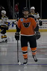 During the final year of his contract in the 2013–14 season, MacDonald was traded by the Islanders to the Philadelphia Flyers in exchange for minor leaguer Matt Mangene, a second round pick in the 2015 NHL Entry Draft, and a third-round pick in the 2014 NHL Entry Draft on March 4, 2014.[3] The Flyers signed MacDonald to a six-year, $30 million contract extension on April 15.[4] On October 5, 2015, the Flyers put MacDonald on waivers. On October 6, 2015, MacDonald cleared waivers and was assigned to the Flyers' AHL affiliate team, the Lehigh Valley Phantoms.[5]