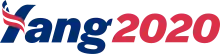 Yang's candidacy began on November 6, 2017, when he filed with the Federal Election Commission to participate in the Democratic primaries.[1] Andrew Yang was the second Democrat to announce his candidacy for the presidency. The campaign began with a small initial staff working out of an apartment owned by Yang's mother.[12] He ran on the slogans "Humanity First" and "Make America Think Harder" (MATH).[13][14] According to BBC, Yang was "one of the first and most recognizable East Asian-Americans in history to run for president".[15] He stated that he hoped his "campaign can inspire Asian Americans to be engaged in politics."[16] Had he been nominated, he would have become the first Asian American to serve as any major party's presidential candidate, and had he been elected, he would have become the first Asian-American president.[17]