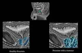 ![]() Differences between a healthy prostate and a prostate with a tumour | |