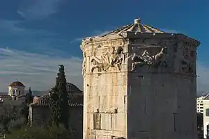 Andronicus of Cyrrhus or Andronicus Cyrrhestes (Greek: Ἀνδρόνικος Κυρρήστου, Andrónikos Kyrrhēstou), son of Hermias, was a Greek astronomer best known as the architect of the horologion at Athens called the Tower of the Winds.[1] Andronicus also built a multifaced sundial in the sanctuary of Poseidon on the Greek island of Tinos. He flourished about 100 BC.