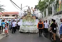 Principal photography on Ang Larawan began in June 2015, with Boy Yñiguez as cinematographer.[7] It officially began in Intramuros, Manila for the La Naval procession scene, where 600 costumed extras were involved. Filming with the cast occurred in Taal, Batangas and lasted 11 days, particularly in the Villavicencio ancestral home, which served as the ancestral home of the protagonists' family in Intramuros. Gino Gonzales supervised the production design. While the music and song performances were mostly prerecorded, the dialogues were recorded live.[8]