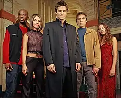 The show details the ongoing trials of Angel, a vampire whose human soul was restored to him by a gypsy curse as a punishment for the murder of one of their own. After more than a century of murder and the torture of innocents, Angel's restored soul torments him with guilt and remorse. Angel moves to Los Angeles, California, after it is clear that his doomed relationship with Buffy, the vampire slayer, cannot continue. During the majority of the show, he works as a private detective in L.A., where he and a variety of associates work to "help the helpless", restoring the faith and saving the souls of those who have lost their way.[5] While he must also battle his own demonic nature, he typically battles with evil demons or humans allied to them, primarily related to Wolfram & Hart, a law firm supported by occult practices which is an extension of otherworldly demonic forces.
