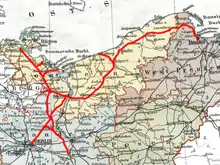 The Angermünde–Stralsund railway is a major railway in the north-eastern German states of Brandenburg and Mecklenburg-Vorpommern, which is part of the long-distance line from Berlin to Rügen. The line is one of the oldest lines in Western Pomerania and was built and operated by the Berlin-Stettin Railway Company (Berlin-Stettiner Eisenbahn-Gesellschaft) from 1863.