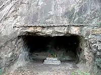 The Phnom Da is a granite outcrop and a historic site about 3 kilometers from Angkor Borei. It is notable for the oldest surviving temples, Khmer and Sanskrit inscriptions and as a source of the earliest stone statues in Cambodia that can be dated with reasonable certainty based on the epigraphical evidence, iconography and style.[3][4] These are attributed to the reign of King Rudravarman (514–539 CE), and confirm the adoption of ideas from what is now Vietnam and India, along with the Cambodian creativity and innovation with design. Among these is the Triad of Phnom Da, a stone statue set of three avatars of Vishnu – as Vishnu, Rama and Balarama (related to Krishna).[3][5] Other free standing stone statues found here – such as the Trivikrama, Krishna Govardhana and Hari Kambujendra – relate to Hinduism, with a style and iconography similar to the late or post-Gupta Empire period.[3] The Phnom Da site also has the oldest standing Khmer stone temple (6th-century CE), with evidence that wooden Hindu temples preceded it and were the original house of some of the stone statues of Vishnu and his avatars that are found here. Most of these statues have been moved to the Phnom Penh National Museum, in the capital of Cambodia.[3][5][6]
