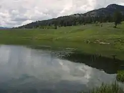 Trout Lake, formerly known as Fish Lake and Soda Butte Lake[46] is a 12 acres (0.049 km2) popular backcountry lake for hikers and anglers in Yellowstone National Park. The lake is located approximately .33 miles (0.53 km) north of the Northeast Entrance Road near the confluence of Pebble Creek and Soda Butte Creek. The lake sits in a depression on a high bench above the Soda Butte Creek canyon. A steep trail through a Douglas fir forest leads to the lake. The trailhead is located at: 44°53′57″N 110°7′21″W.