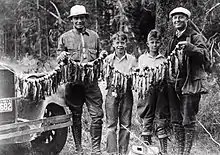 The original expeditions that explored the regions that ultimately became Yellowstone National Park in 1872 caught fish in many of its waters to supply themselves with fresh provisions. It wasn't long after the creation of the park, that park officials understood the importance of angling to visitors and the importance of creating a ready resource to supply hotels and camps within the park with fresh fish. This resulted in the first government stocking of native and non-native species in 1889 and continued with a variety of successful and unsuccessful stocking efforts until 1955 when all stocking programs in the park were discontinued. Today's park trout are completely wild populations. Many of the park's waters held no fish prior to government stocking operations which introduced mainly non-native species to the rivers and lakes and redistributed native species.[5] In fact, with the exception of the upper Yellowstone River drainage, all the lakes and streams above major waterfalls were devoid of game fish prior to government stocking operations.[6]