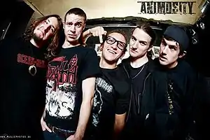 Animosity formed in 2000 in San Francisco, California.[1] They released their debut album, Shut It Down, on Tribunal Records in 2003, when the members of the band were 16 and 17 years old.[2] In 2005, they released their second disc, Empires, on Black Market Activities[3] (with distribution through Metal Blade Records) and toured the United States with Origin and Malevolent Creation. Their third album, Animal, was produced by Kurt Ballou of Converge and released in October 2007.[4] They have also toured Europe with Converge and Belgian hardcore/punk band Rise and Fall. Animosity disbanded officially after nearly a year of non-activity in October 2009. The band's frontman Leo Miller stated that their "musical and experiential goals have been exceeded" and: "If you haven't gotten enough of Animosity, please rest assured that we have."[5]