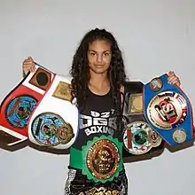 She is the former two time Glory Super Bantamweight champion,[5] and the former WPMF World Muay Thai Flyweight champion.[6] She is also the former French, European and World Savate Champion.[7]