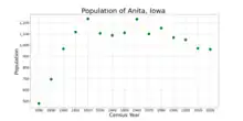 Anita is a city in Cass County, Iowa, United States, platted in 1869 and incorporated in 1875. The population was 963 at the 2020 census.[2] Lake Anita State Park is located just outside the town.