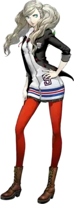 Ann Takamaki (高巻 杏, Takamaki An, Anne Takamaki in the Japanese version) is a character in the 2016 video game Persona 5. She is a mixed-race teenage girl and a second-year student at the fictional Shujin Academy. She is also one of the founding members of the Phantom Thieves of Hearts, a group formed with the intention of stopping wrongdoers from hurting others. She helps establish this group in part to get revenge on one of her teachers, Suguru Kamoshida, who had been sexually harassing her and drove her friend to attempt suicide. She gets supernatural powers while in a world called the Metaverse, powers which come from her Persona, Carmen, motivated by her anger over Kamoshida.