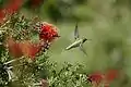 While collecting nectar, the Anna's hummingbird assists in plant pollination.[8] There is evidence that Anna's hummingbirds in flight generate an electrostatic charge that would adhere pollen to their beaks and feathers, facilitating transfer of pollen grains to hundreds of flowers per day while foraging for nectar.[9] This species sometimes consumes tree sap.[10]