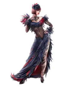 Anna is sultry and curvy with a brown or black chelsea hair,[5] wearing stylish red and blue outfits. Before the fight, she is seen flirting and teasing the enemy, and then to ridicule meeting ends with a coarse laugh and provocative moves; for her attitude and way of clothing can be considered as a flapper as well as a femme fatale character. Usually, she is shown wearing a modified silk qipao/cheongsam with floral pantyhose along with matching gloves and shoes, often high heels, and she keeps her hair well-coiffed and cut to the neckline. She is also seen a few times wearing a zebra printed jumpsuit with a matching zebra printed hat, a necklace, black gloves, and black heels. She is often among the few characters who are given a third outfit option, as opposed to the standard two, some of them designed by Mamoru Nagano.[6] In Death by Degrees, Anna is wearing a more Nina-style high-tech combat outfit and has a different haircut. Her look was revamped once more for Tekken Tag Tournament 2.[7] She is 18 in the first Tekken, 20 in Tekken 2, and 41 in Tekken 6; although she is in her 40s, cryosleep effects preserved her physical abilities of her 20s.