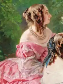 She belongs to the ladies-in-waiting depicted with Eugenie in the famous painting Empress Eugénie Surrounded by her Ladies in Waiting by Franz Xaver Winterhalter from 1855.