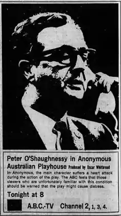 "Anonymous" is the 11th television play episode of the first season of the Australian anthology television series Australian Playhouse.[1] "Anonymous" was written by Pat Flower and originally aired on ABC on 27 June 1966.