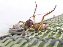 | Poor Knights giant wētā, Deinacrida fallai Overall length 20 cm (8 in) | |