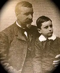 Mills married Hannah Cassel of Zanesville, Ohio in 1868;[12] they had three children, only one of which, a daughter, survived to maturity.[13] Mills' son, Anson Cassel Mills, died of appendicitis in 1894 at the age of fifteen. On his grave marker in Arlington National Cemetery, Mills had inscribed, "A boy of sweet promise."[14] Although generally conservative in his political views, Mills supported women's suffrage and prohibition and had indistinct religious beliefs.[15] Mills completed and privately published an autobiography, My Story, in 1918. He retired from the boundary commission in 1914 and died in Washington, D.C., on November 5, 1924.[16]