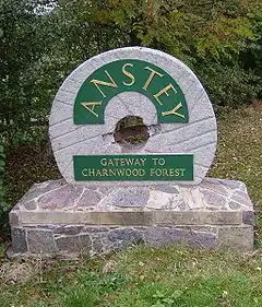 ![]() 'Anstey - Gateway to Charnwood Forest' sign seen on entering the village | |