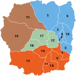 Antananarivo Province was divided into four regions of Madagascar - Analamanga, Bongolava, Itasy and Vakinankaratra. These four regions became the first-level administrative divisions when the provinces were abolished in 2009. They are sub-divided into 19 districts: