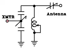 If additional filtering is desired, the inductor in any of the three-element designs can be deliberately set to slightly larger values than the necessary minimum, raising the circuit Q and so providing a partial band pass effect.[25] Either the high-pass T or low-pass π can be adjusted in this manner; the SPC tuner provides a full band-pass effect when similarly adjusted. The additional attenuation at harmonic frequencies can be increased significantly with only a small percentage of additional loss at the tuned frequency.